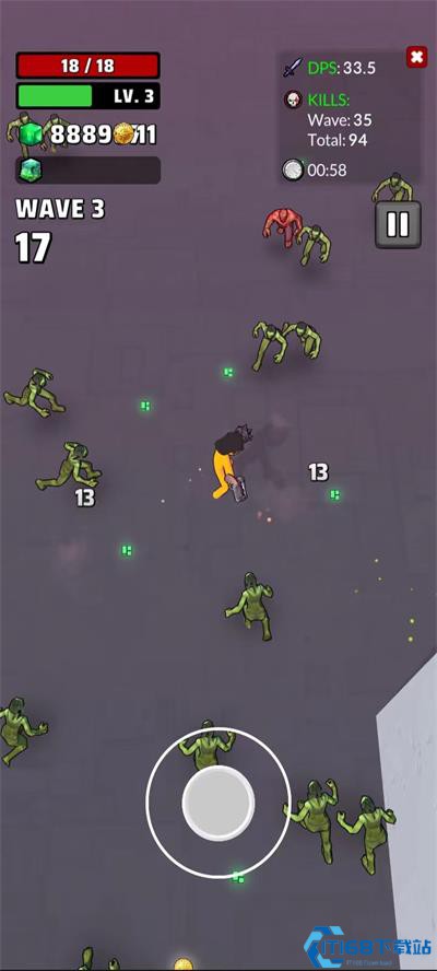 拖动下图这个滑块,控制人物的移动,当有敌人的时候,武器会自动开火;注意看,当击杀敌人的时候,绿色的晶体以及金币,玩家可以进行收集,收集到一定数量可以用来购买物品,当然,玩家还可以攀爬到灰色的石柱子上以获得优势。游戏中的地形设计非常巧妙,玩家需要善用地形来躲避敌人的攻击。石柱子不仅可以作为制高点,还能帮助玩家发现隐藏的资源和秘密通道。