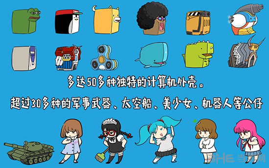 游戏提供了多达50种风格各异的计算机外壳,每款外壳都拥有独特的造型和配色方案,让玩家可以随心所欲地打造个性化电脑。超过30种不同类型的收藏公仔等你来收集,包括炫酷的军事武器、未来感十足的太空船、甜美可爱的美少女以及科技感爆棚的机器人等。