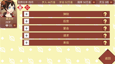 在这款游戏中,每一步决策都需谨慎,因为你的每一个选择都将影响王朝的未来。我们的核心玩法聚焦于王朝的延续与发展,玩家需要精心培养继承人,确保帝国能够代代相传。如果无法找到合适的接班人,你将亲眼见证王朝的衰落,再也无法延续这段波澜壮阔的历史。