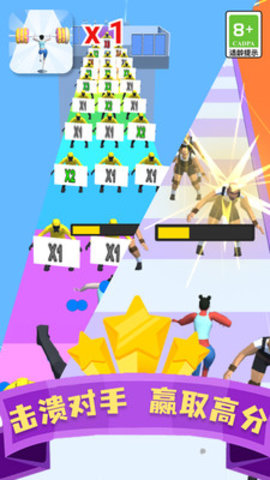 一款结合跑酷和举重元素的游戏,玩家需控制角色抓举杠铃,增加重量,飞越障碍,并在跑酷过程中冲刺至终点。游戏中的障碍设计巧妙,玩家需要灵活运用跳跃和冲刺技巧,才能顺利通过。随着关卡的推进,难度逐渐提升,带来更多挑战。