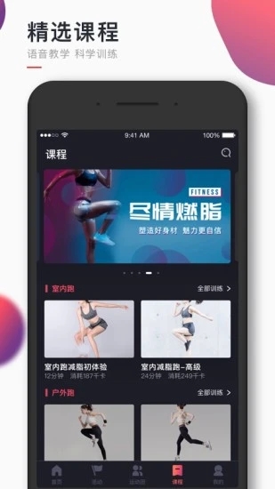 【跑步课程】提供由专业教练设计的跑步训练课程,通过语音实时指导,帮助用户以最科学的方式达到最佳锻炼效果,让燃脂变得更高效、更有趣。