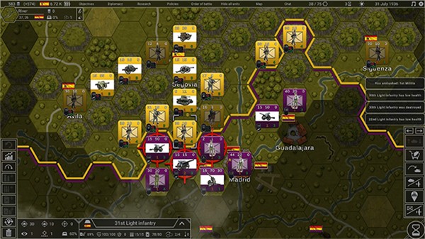 战斗过程中要善用地形优势,将反坦克炮部署在制高点能获得射程加成。每个六边形格子的占领状态会实时影响战场态势,建议优先控制铁路枢纽和战略要地。游戏中的外交系统相当复杂,与他国结盟时需要考量意识形态兼容性,过早暴露战略意图可能导致外交关系恶化。冬季作战要特别注意部队保暖装备,严寒天气会显著降低步兵单位的作战效能。