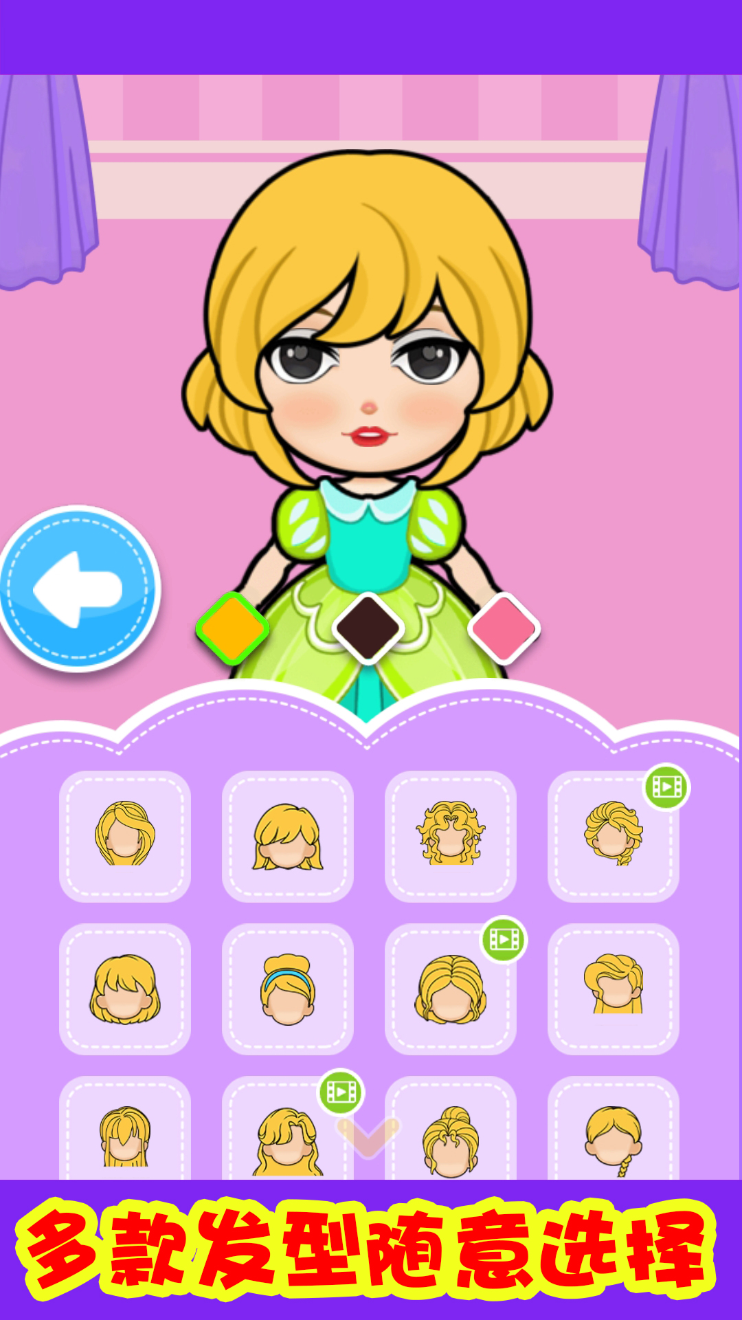 用各种选项改变公主的发型,从飘逸的长发到优雅扎成的马尾辫。游戏提供了超过50种不同的发型选择,包括浪漫的波浪卷发、精致的编发和时尚的短发造型。你还可以调整发色,从经典的金色到梦幻的粉色,甚至尝试大胆的彩虹渐变效果。每个发型都配有精美的发饰,如闪亮的皇冠、可爱的蝴蝶结等,让你的公主更加光彩照人。