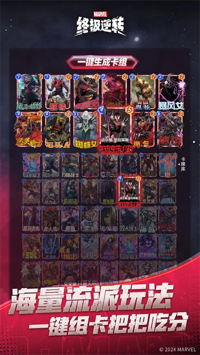 漫威终极逆转是由网易与漫威强强联手打造的全新策略卡牌手游,将漫威宇宙的超级英雄与经典反派悉数收录,带来前所未有的卡牌对战体验。玩家可以自由收集数百张特色卡牌,组建独一无二的英雄阵容,在充满变数的六格战场上展开三分钟快节奏对决。游戏独创的"逆转"机制让每场战斗都充满戏剧性转折,无论是新手还是资深玩家都能在简单易上手的规则中,感受到深度策略博弈的乐趣。漫威粉丝更能在游戏中发现大量彩蛋与角色联动,沉浸式体验超级英雄世界的魅力。