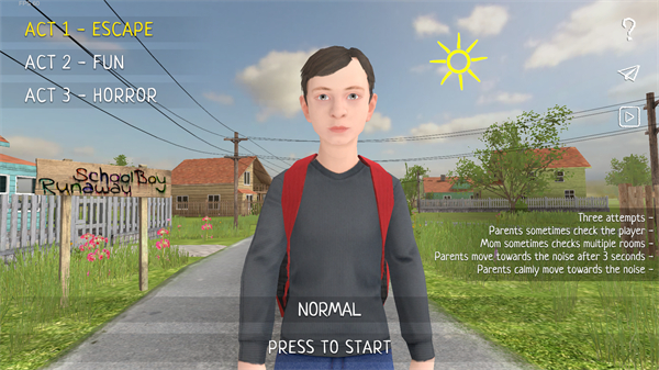 学生潜行逃亡是一款极具趣味性的冒险解谜游戏,玩家将扮演一名被困在神秘环境中的学生,通过寻找线索、解开谜题来成功逃离。游戏以第一人称视角呈现,带来沉浸式的逃亡体验。在游戏中,玩家需要仔细搜寻每个角落,收集各种有用的道具和物品,巧妙利用它们来解决遇到的难题。游戏场景设计精巧,充满挑战性,玩家需要时刻保持警惕,避免被父母或其他角色发现,同时还要规划最佳的逃生路线。