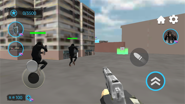 操作界面直观易上手,游戏采用经典的双摇杆操控方式。画面左侧的虚拟摇杆控制角色移动,右侧则集中了射击、跳跃、技能释放等主要功能键。游戏还支持自定义按键布局,玩家可以根据个人习惯调整操作方式。