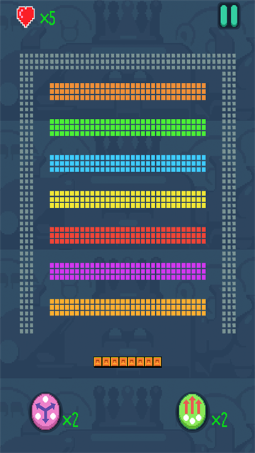 移动挡板接住下落的弹珠,并使其成功反弹上去继续击打方块。挡板可以升级加长,但要注意某些关卡会设置移动障碍物增加挑战性。