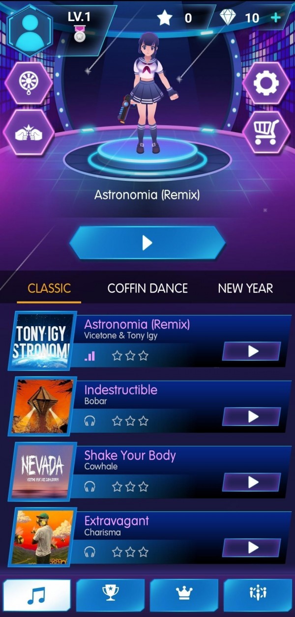 背景的音乐非常的轻快体验起来的感觉非常的不错,收录了多首原创电子音乐,每首都能激发玩家的节奏感。