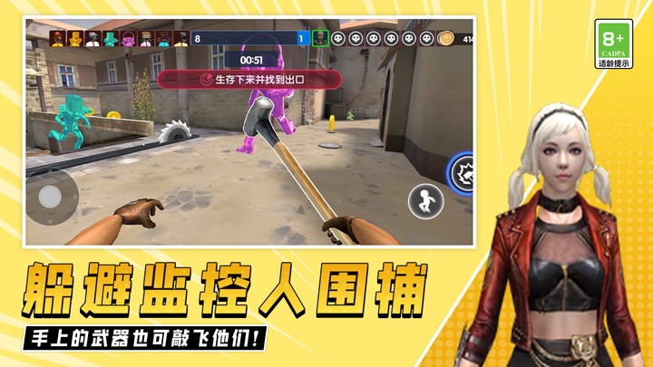 游戏的核心亮点在于其创新的追逐机制,玩家需要唤醒沉睡的监控人后展开惊心动魄的逃亡。场景中隐藏着各种关键道具,需要玩家细心探索才能发现。面对监控人的围追堵截,玩家不仅可以躲避,还能利用武器进行反击。游戏还设计了多种机关陷阱,引诱敌人触碰机关是制胜的关键。此外,随机出现的增益BUFF能为玩家创造逆转战局的机会。