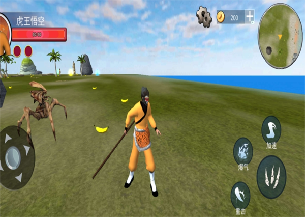 左键可以控制孙悟空进行前后左右的移动,右边的按键可以进行跳跃攻击等。操作方式简单直观,玩家可以轻松施展孙悟空的各项技能,享受流畅的战斗体验。