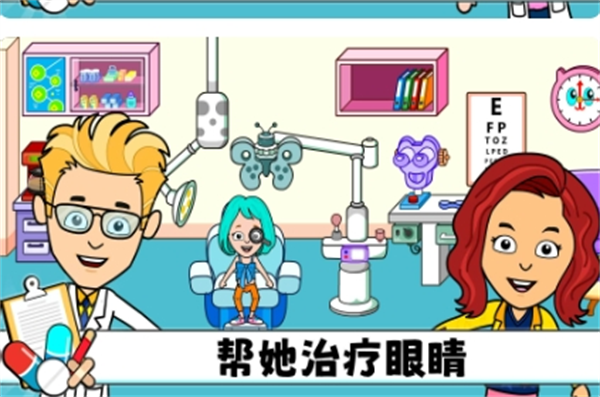 游戏采用高品质的2D卡通渲染技术,每个场景都经过精心设计,色彩搭配和谐明亮。医院环境整洁温馨,医疗设备造型可爱又不失专业性,人物表情生动活泼,整体画面风格既保持了医疗主题的专业感,又充满童趣和欢乐。