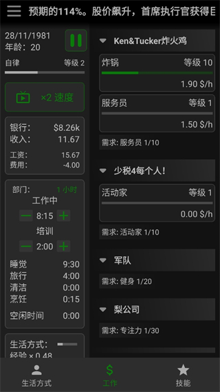 通过学习技能,提高自我发展,提升能力赚取更多的工资或是经验。技能学习采用时间管理机制,玩家需要合理安排学习、工作和休息时间。高级技能还能解锁特殊事件和隐藏剧情,为游戏增添惊喜。