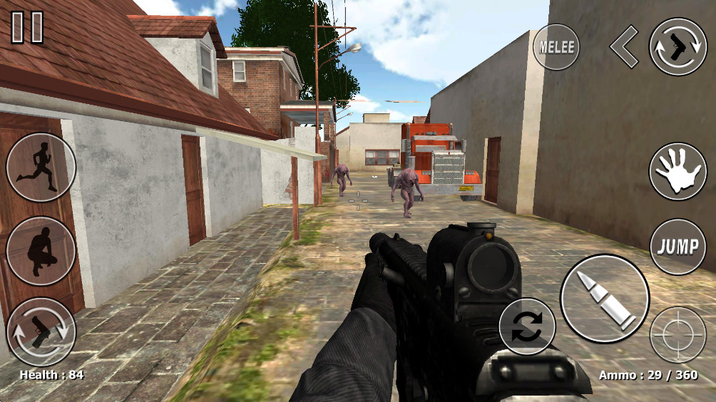 打开游戏后,首先点击START按钮进入主界面。游戏提供了详细的新手教程,建议初次玩家先完成教程以熟悉基本操作。进入第一关后,你需要通过虚拟摇杆控制角色移动,并使用射击按钮消灭来袭的僵尸。游戏采用第三人称视角,让你可以更好地观察周围环境。随着游戏进程,你会遇到更多特殊僵尸和Boss战,需要灵活运用各种战术才能取胜。