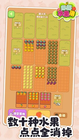 挪挪水果消安卓版是一款充满创意与乐趣的休闲益智游戏,它将传统消除玩法与农场经营完美结合,为玩家带来全新的游戏体验。游戏中,玩家需要通过消除各种色彩缤纷的水果来完成挑战任务,同时还能体验种植和经营的乐趣。每次成功消除都能获得丰厚奖励,这些奖励可以用来购买更多高级水果种子,种植出更优质的水果后还能卖出更高价格,让你的农场经营之路更加精彩。