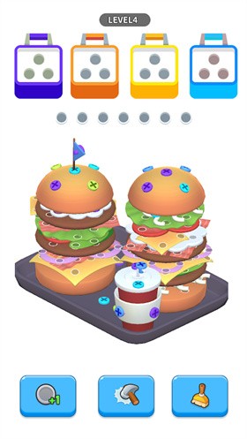 游戏拥有海量独特的物品元素,从建筑构件到美食造型,所有部件都可以自由组合搭配。每种销钉都有对应的专用工具,玩家需要仔细观察,找到匹配的颜色和形状,解决各种精心设计的难题。游戏中还准备了丰富的辅助道具,当遇到困难关卡时可以使用这些道具,帮助玩家快速突破难关。随着游戏进程推进,玩家将解锁更多高级工具和特殊物品。