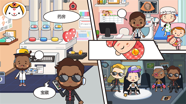 探索小镇:游戏提供了多个场景,如家庭、学校、商店等,玩家可以自由探索这些场景,发现隐藏的惊喜。每个场景都设计有独特的互动元素。