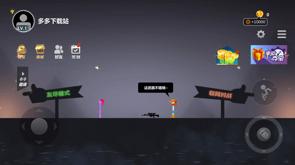 新手玩家可以按照以下步骤快速上手:首先点击屏幕进入游戏,选择喜欢的火柴人形象。游戏贴心地提供了新手引导教程,帮助玩家熟悉基本操作。通过方向键控制角色移动,跳跃键可以翻越障碍物。完成基础训练后,玩家可以跳过引导直接进入主界面。建议先从"友尽模式"开始体验,选择房间参与乱斗。熟悉游戏节奏后,可以尝试更具挑战性的联网对战模式,系统会自动匹配实力相当的对手。
