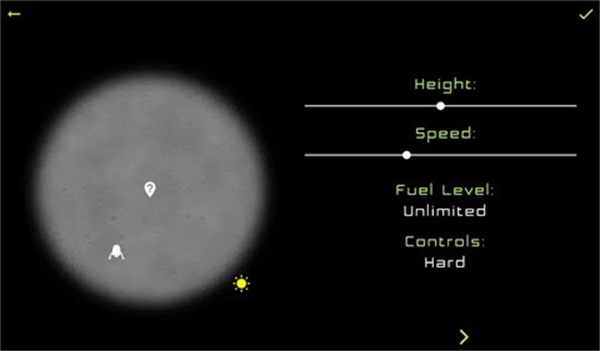 使用屏幕上提供的操控按键去移动飞船飞行的方向,选择要着陆的地方进入到达月球的表面开始使用工具去探索以及记录下来场景。长按方向键可启动精密模式,此时时间流速会降低10倍便于微调。着陆阶段务必注意右下角的G力指示器,超过安全值会导致舱体损坏。