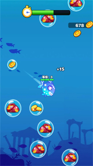 在实际游玩过程中,玩家需要通过滑动屏幕精准控制小鱼的移动轨迹。在寻找可吞噬目标的同时,还要注意收集场景中随机出现的增益道具。这些道具不仅能提供即时帮助,还能积累经验值加速成长。