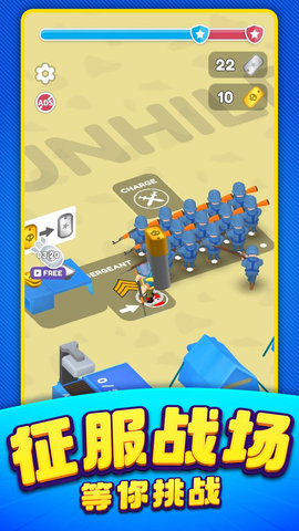 小兵特工队是一款极具策略性的军事题材游戏,玩家将扮演一名指挥官,肩负起组建和壮大自己军队的重任。在这款游戏中,你需要通过精心的规划和策略部署,从招募士兵开始,逐步打造一支所向披靡的精英部队。游戏提供了多种军事手段,包括空袭、装甲武装等,让你能够不断扩大军事实力和控制区域,最终成为战场上的霸主。
