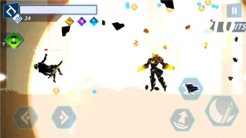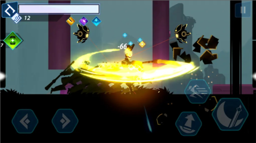 游戏过程中点击左下角箭头所指的方向键,可操控角色移动。长按方向键可以进行冲刺,配合攻击键可以发动强力冲刺攻击。随着游戏进程推进,玩家还能解锁更多高级动作技巧。