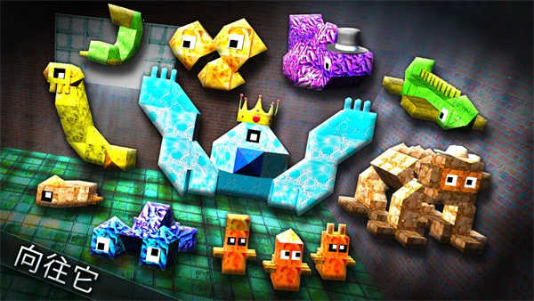 说是创造世界,更多的是养成,首先,选择第一个怪物蛋。游戏提供了丰富多样的养成系统,从怪物孵化到成长进化都充满惊喜。怪物蛋有水、火、木三种属性,每种属性都会影响怪物的基础能力和外观特征。选择完毕后,你需要进入平台,这里是你施展创意的舞台。凭着想象力,在36种不同的构建方块中构建最强力的专属怪物,每个方块组合都会带来意想不到的特殊效果。