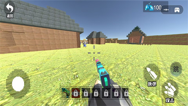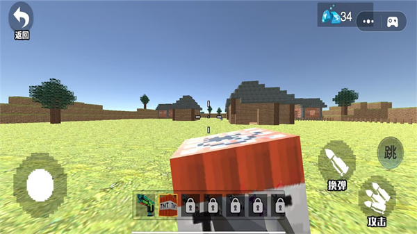 进入游戏后,点击开始游戏按钮即可开启你的沙盒冒险之旅。游戏界面简洁明了,新手教程会引导你快速掌握基本操作。屏幕左侧的虚拟摇杆控制角色移动,右侧的三个功能按钮分别对应换弹、攻击和跳跃动作。