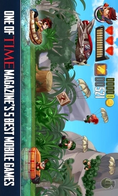 《河道英雄Ramboat》将动作射击与跑酷玩法完美结合,为玩家带来前所未有的游戏体验。在这个充满动感的冒险世界中,玩家将跟随主角曼波和他的队员们展开一场惊险刺激的河道追击战。游戏操作经过精心优化,特别针对移动设备触屏设计,只需单手即可完成所有动作指令,包括跳跃闪避障碍、下潜躲避攻击、上浮发动突袭以及使用各种强力武器消灭敌人。游戏画面采用精美的像素风格,搭配流畅的动作表现,让人仿佛置身于经典街机游戏《合金弹头》的激战场景中,每一场战斗都令人热血沸腾。