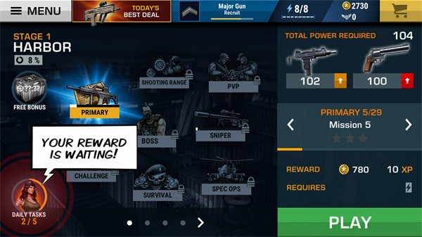 游戏鼓励玩家探索不同的武器搭配和战术组合。无论是喜欢近距离冲锋的突击手,还是偏好远程狙击的精准射手,都能找到适合自己的玩法。每次完成挑战后,玩家都会获得丰厚的奖励,包括稀有武器、高级配件等,这些都将帮助玩家在后续的战斗中获得更大优势。随着游戏进程的推进,玩家将不断解锁新的武器和技能,体验越来越丰富的战斗乐趣。