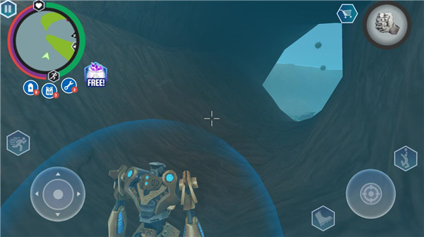 游戏的操作系统非常直观,新手玩家也能快速上手。在海底探索时,鲨鱼形态能让你更灵活地穿梭于珊瑚礁之间;而在陆地战斗时,机器人形态则能发挥更强的战斗力。游戏还设置了多种武器系统,包括近战武器、远程枪械和特殊技能,玩家可以根据不同战斗场景自由搭配使用。