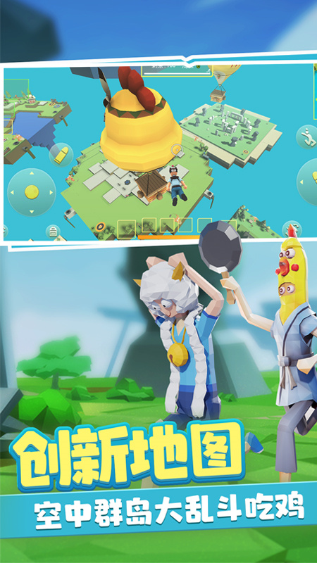 在游戏开始时玩家将被发射到随机岛屿中的随即位置上,随着时间的流逝安全区慢慢缩小,玩家需要使用大炮、弹弓、蹦床等装置移动到安全的岛屿上,并在激烈的对抗中存活下来取得胜利。创新的移动方式让战术选择更加多样化,考验玩家的应变能力和战略思维。