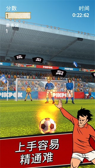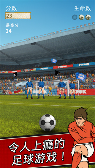 多人模式支持与好友组队竞技,共同挑战高难度进球任务。游戏特别设计了独特的物理系统,玩家可以踢出带有急转弯效果的弧线球,巧妙穿越防守队员的封锁。面对守门员的严密防守,需要灵活运用各种技巧寻找破门角度,游戏还隐藏着特殊球技等待玩家发掘。