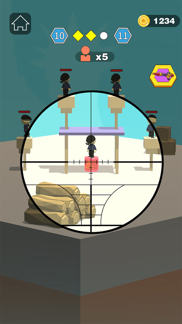 游戏最大的特色在于将紧张刺激的狙击体验与轻松休闲的玩法完美结合。多样化的卡通角色设计为游戏增添了趣味性,每个角色都有独特的动作表现。精心设计的关卡场景虽然采用简约画风,但细节处理十分到位,每个场景都带来全新的战术挑战。从城市巷战到野外狙击,丰富的场景变化让游戏体验永不重复。游戏还特别注重射击手感的打磨,真实的物理弹道和后坐力反馈,让每次射击都充满成就感。随着游戏进程,玩家将解锁更多强力武器和特殊技能,体验越来越精彩的狙击冒险。