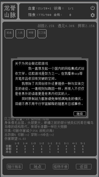 经济系统调整:暂时移除铁匠铺功能,武器改为由怪物概率掉落(20%几率)。丹药系统得到增强:肉搏时可使用服用丹药的效果,使用武器时则触发附加在武器上的效果。丹药持续时间设定为默认50回合,只有在服用或附加到武器上才开始计时。