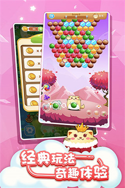 开心萌猫泡泡龙是一款将经典泡泡龙玩法与萌趣猫咪元素完美结合的休闲手游,为玩家带来既熟悉又新颖的游戏体验。游戏采用精美细腻的卡通画风,每一只猫咪角色都经过精心设计,从蓬松的毛发到灵动的表情都栩栩如生。搭配轻松欢快的背景音乐和生动的音效,让玩家仿佛置身于一个充满欢乐的猫咪乐园。