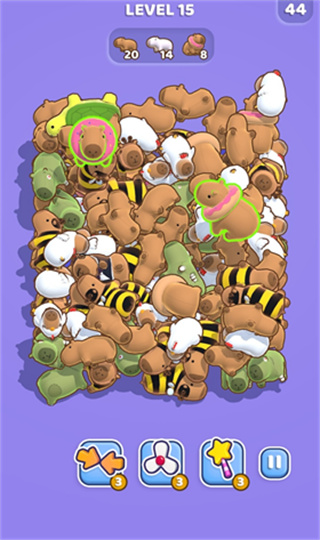 这是一款轻松休闲的消除类游戏,玩家可以随时进入游戏关卡,享受闲暇时光的乐趣。游戏操作简单易上手,即使是新手也能快速掌握玩法。在游戏中,玩家需要在各种复杂的物品中找出相似的元素进行消除,每完成一次消除都能带来满满的成就感。游戏采用可爱的卡皮巴拉形象作为主题元素,搭配精致的3D画面风格,为玩家带来视觉与娱乐的双重享受。