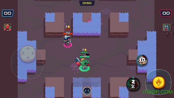 游戏采用独特的双技能天赋系统,每局开始前玩家可以根据英雄特性选择两个天赋技能,这种设计大大增强了游戏的策略性和可玩性。游戏提供1V1单挑和3V3团队两种竞技模式,在3V3模式中,团队配合和战术运用尤为重要,玩家需要善用英雄特性进行区域占领和协同作战。角色设计方面,游戏采用夸张的美式漫画风格,每个英雄都拥有专属武器和技能树系统,玩家可以通过升级来解锁更多强力技能和装备打造选项,打造属于自己的独特战斗风格。