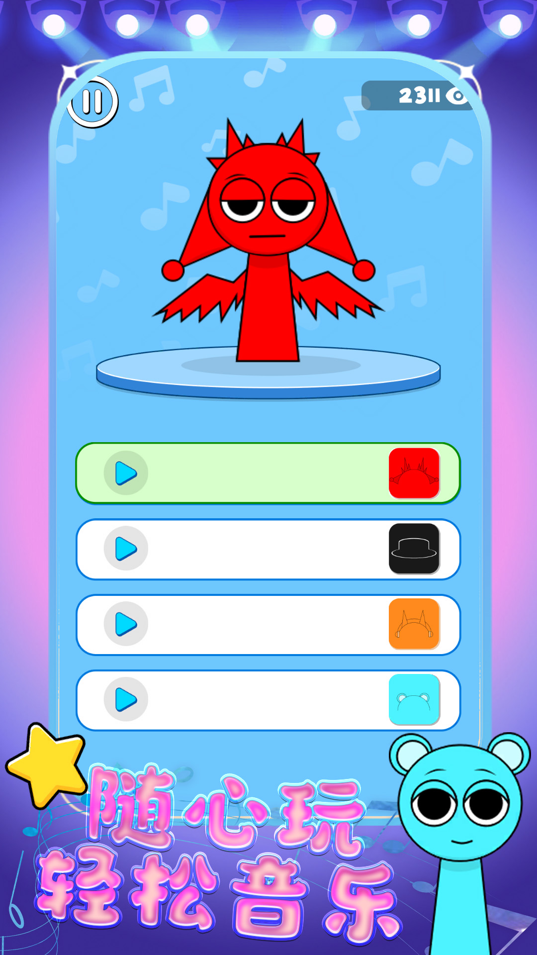除了核心玩法外,节奏音乐游戏还加入了丰富的角色和道具系统。玩家可以通过完成任务或参与活动解锁独特的角色形象和特效,个性化自己的游戏体验。游戏定期更新,不断推出新曲目和活动,保持玩家的新鲜感。无论是休闲娱乐还是竞技挑战,节奏音乐游戏都能满足玩家的需求,成为音乐游戏爱好者的不二之选。