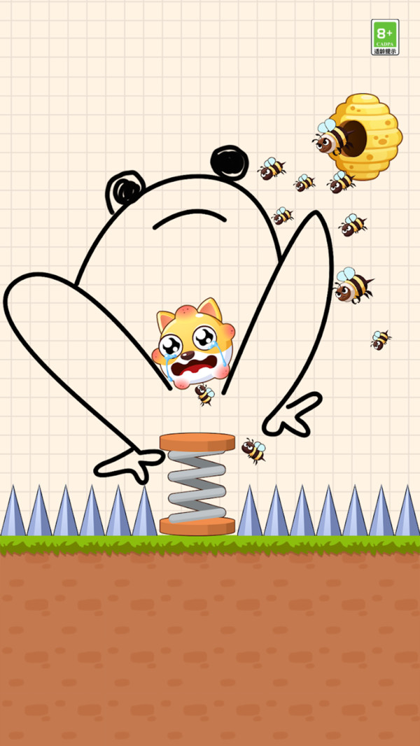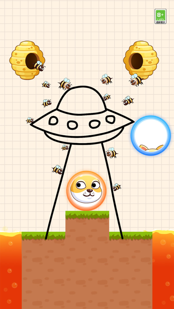 画线机制灵活应对:玩家需要在狗蛋和蜜蜂之间画出防护线,线条角度与结构决定能否成功躲避追击,挑战性非常高。不同材质的线条效果各异,比如钢化线更坚固但消耗更多能量,需要玩家根据情况灵活选择。