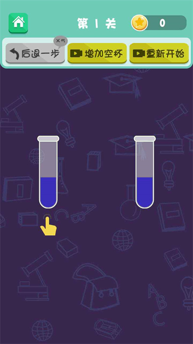 填满瓶子:核心玩法要求玩家将同色液体倒入同一容器直至装满。游戏加入了精确的容量计算系统,玩家需要合理规划倒水顺序,避免出现颜色混杂无法完成的情况。
