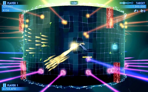 《几何战争3》延续了系列标志性的快节奏战斗风格,玩家进入游戏即可投入激烈战斗。创新的双摇杆控制系统让移动和射击更加流畅,默认开启的自动射击功能降低了操作门槛。游戏允许玩家自定义摇杆功能,满足不同操作习惯。与前作相比,本作在画面表现上有显著提升,粒子特效和光影效果更加震撼,将简约的几何美学发挥到极致。