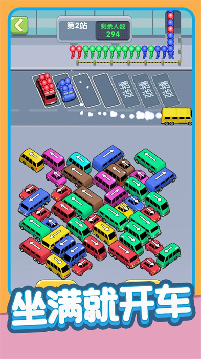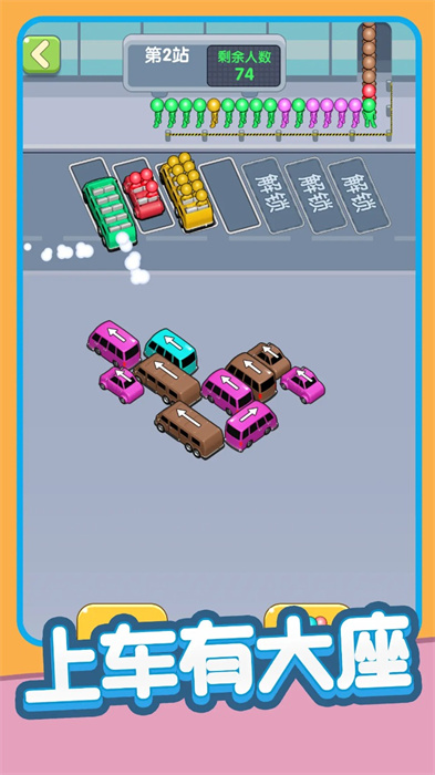 乘客快上车是一款充满趣味的休闲益智游戏,玩家将化身为车站管理员,负责指挥车辆有序通行。游戏的核心玩法是通过观察和匹配颜色,将乘客安排到对应颜色的车辆中,并规划最佳路线让所有车辆顺利驶离。随着关卡推进,难度逐渐升级,玩家需要运用策略思维破解复杂的停车难题。这款游戏不仅考验逻辑能力,还融入了轻松愉快的闯关元素,特别适合喜欢动脑解谜的玩家。简洁明快的画风搭配魔性上瘾的玩法,保证让你一玩就停不下来!