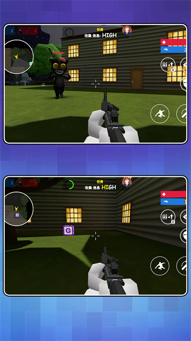射击挑战:游戏采用快节奏的射击玩法设计,玩家需要快速寻找敌人并精准射击,体验紧张刺激的射击过程,考验玩家的反应能力和瞄准技巧。