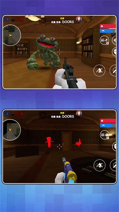 使用枪支:游戏提供多种武器选择,玩家可以按照操作指引移动角色,在黑暗环境中搜寻敌人踪迹,然后使用合适的武器进行精准射击,每种武器都有独特的射击手感和战术价值。