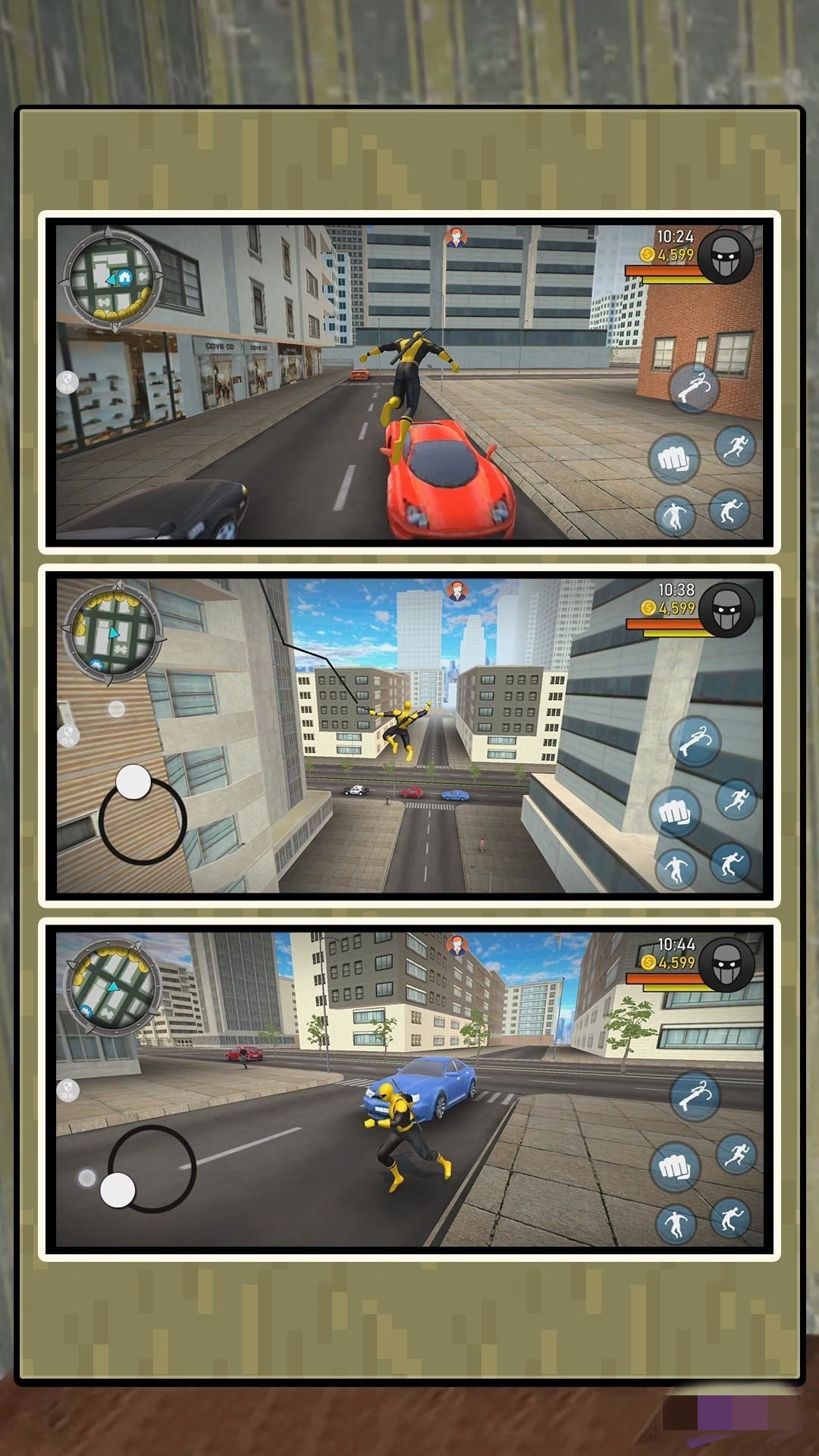 在蜘蛛人激斗都市安卓版游戏中,玩家可以尽情施展蜘蛛人的各项能力。通过精准的触控操作,玩家可以发射蛛丝在高楼间快速摆荡,或是攀爬各种建筑表面。游戏采用了创新的战斗系统,玩家可以组合使用蛛丝攻击、近身格斗和环境互动,创造出独特的战斗风格。随着游戏进程,玩家将解锁更多强力技能,如蛛网束缚、蛛丝炸弹等特殊能力。游戏还加入了独特的"蜘蛛感应"系统,在危险来临时会给予玩家提示,大大增强了游戏的沉浸感。