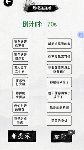 画风清新脱俗,融合了传统水墨风格与现代设计元素,充满脑筋急转弯的趣味性,让人一玩就停不下来。闯关过程充满惊喜与挑战,每个难题都经过精心设计,既能娱乐又能锻炼思维能力。游戏特别注重培养玩家的观察力与洞察力,每个关卡都设置了独特的解谜机制,等待玩家去探索发现。随着游戏进程的推进,谜题难度会逐步提升,但成就感也随之倍增,这种设计让游戏体验更加丰富多元。