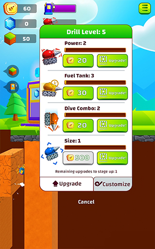 点击滑动屏幕控制挖掘机向下挖掘,获得宝石。挖掘过程中要注意避开坚硬的岩石层,优先选择资源丰富的区域进行开采。获得宝石后,到转换机前将宝石换成金币。金币是游戏中的重要货币,可用于各种升级和购买。可利用挖掘的土块雇佣机器人,增加收益。机器人助手可以自动收集资源,大大提升你的挖掘效率,建议优先升级他们的工作能力。