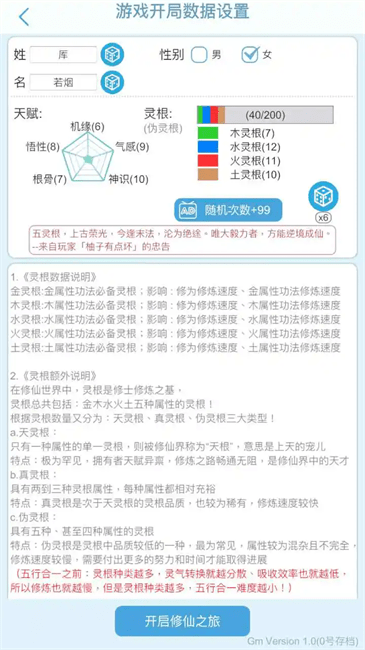 天赋系统:气感、神识、根骨、悟性和机缘,这五大天赋将影响您的修炼速度和战斗能力。如何合理运用这些天赋,成为修仙之路上的一大关键。天赋可以通过特殊道具和机缘进行提升。