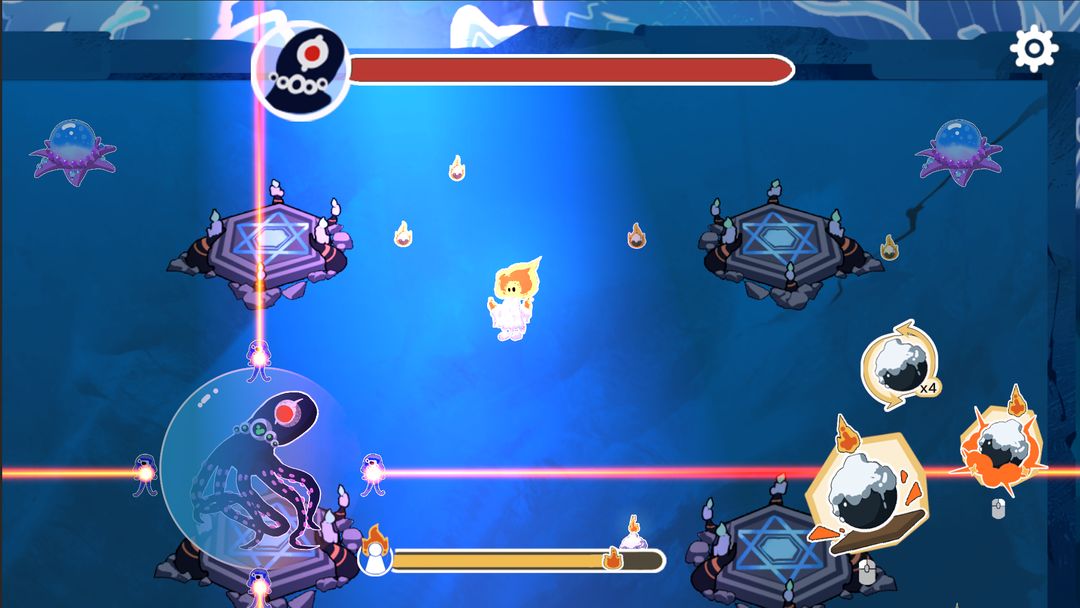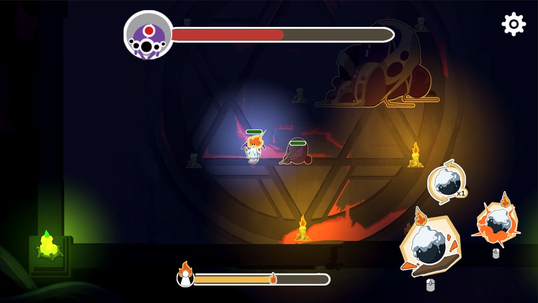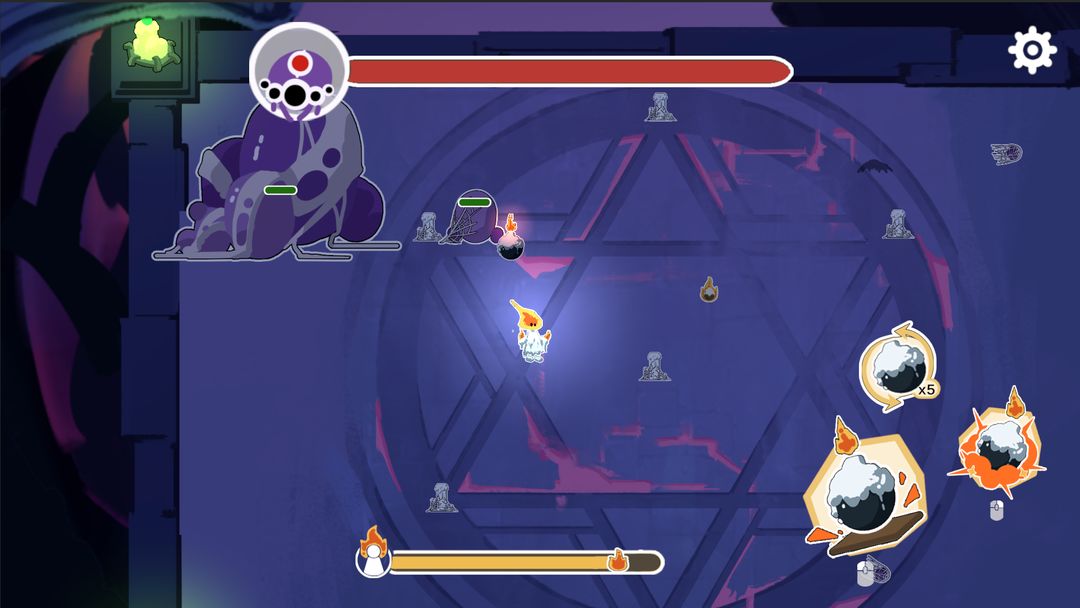 游戏右边可以角色放置炸弹,引爆炸弹,或者是收回炸弹,玩家们放置炸弹需要一段时间,如果在此期间被敌人攻击,炸弹放置失败,只能选择重新放置,炸弹爆炸可以点亮蜡烛。炸弹系统是游戏的核心玩法,玩家需要根据敌人位置和环境特点,选择合适的时机放置炸弹,既要消灭敌人又要保护自己。