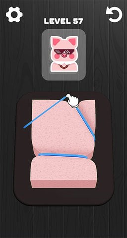 玩法简单却困难,简单之处在于操作,玩家利用有限的橡皮筋从任意角度都海绵进行捆绑,没有任何限制。但随着关卡推进,需要精确控制每根橡皮筋的张力系数,某些大师级作品甚至要考虑材料疲劳度等隐藏参数。
